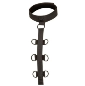 Le collier, avec un tour de cou maximum de 53 cm, est parfait pour te soumettre aux désirs de ton partenaire. Il est doté de 6 anneaux sur la partie centrale, pour varier les jeux et les positions.
