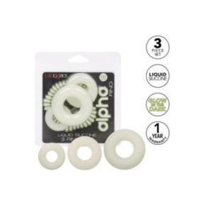 Renforcez votre érection et apportez plus d'originalité à vos moments intimes avec le Pack de 3 cockrings Phosphorescents ALPHA RING. Ce pack contient trois anneaux en silicone de tailles différentes pour varier l'intensité du serrage et ajouter un effet lumineux à vos jeux érotiques. Faciles à mettre en place grâce à leur structure étirable, ces anneaux péniens sont idéaux pour améliorer votre endurance et intensifier vos sensations.