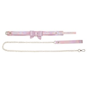 Le Collier-Laisse Paris Rose est un bijou de sophistication avec un gros nœud à l'avant, recouvert de brillants. Son élégance est rehaussée par sa couleur rose pâle irisé qui apporte une touche de douceur et de féminité à votre tenue. Fabriqué en simili de haute qualité, il offre un confort optimal pour une utilisation prolongée.