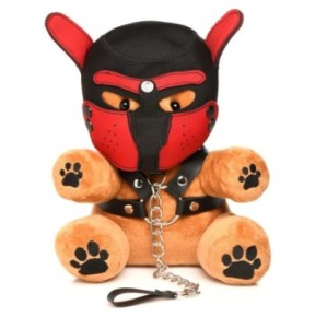 L'Ours en Peluche Puppy Bear mesure 22 cm de hauteur et 15 cm de largeur. Il est fabriqué avec des matériaux de haute qualité pour assurer sa durabilité et son confort. Le détail qui le rend vraiment spécial est sa cagoule puppy noire et rouge, qui vient avec une muselière amovible. Cette cagoule est faite en néoprène, un matériau connu pour sa résistance et sa flexibilité.