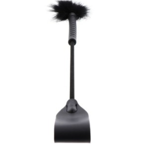 La Cravache et Plumeau Tick Whip 56cm Noir est un outil de séduction double face. D'un côté, vous découvrirez une cravache rectangulaire souple de 7 cm de long et 4 cm de large, idéale pour affirmer votre domination. De l'autre côté, vous trouverez un plumeau doux et sensuel, parfait pour titiller et exciter votre partenaire.