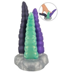 Le Triple Gode Tri Tentak est fabriqué en silicone de haute qualité pour une sensation douce et naturelle. Il dispose d'une longueur insérable de 19 cm et une largeur maximale de chaque gode de 4.5 cm. Lorsque les trois godes sont utilisés en même temps, la largeur atteint 9.5 cm pour une satisfaction optimale. La surface texturée du gode stimule davantage pour un plaisir intensifié.