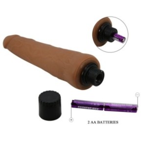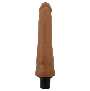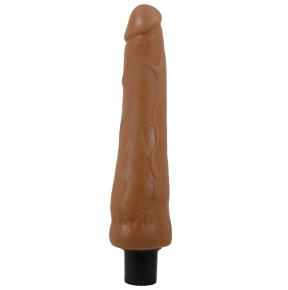 Ce gode est doté d'une forme droite avec une longueur insérable de 21 cm et une largeur variable de 3 à 5.5 cm. Son design est complété par une poignée variateur de vibrations pour un contrôle total de votre plaisir. Fabriqué en TPR marron, il offre une expérience tactile réaliste et agréable.