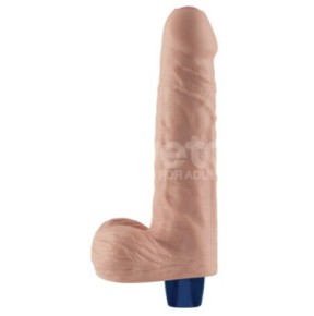 Ce gode vibrant mesure 22 cm de longueur totale avec une longueur insérable de 17 cm et une largeur allant de 3.5 à 4.4 cm. Il est conçu en TPE couleur chair, un matériau doux et réaliste pour une expérience plus authentique. Il est également étanche pour vous permettre de l'utiliser dans l'eau en toute sécurité.
