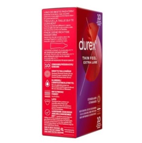 Les préservatifs Durex Thin Feel Extra Lube sont faits en latex transparent, assurant une discrétion totale. Chaque boîte contient 10 préservatifs, prêts à l'utilisation.